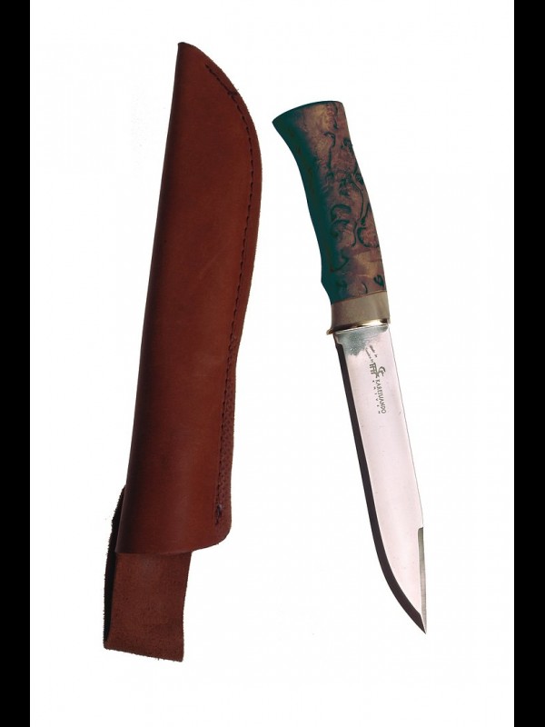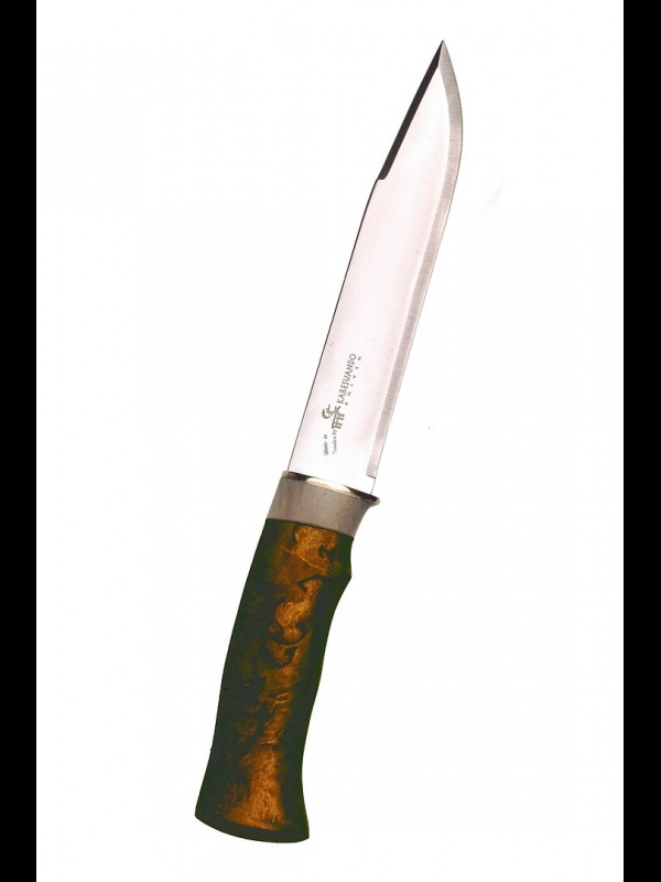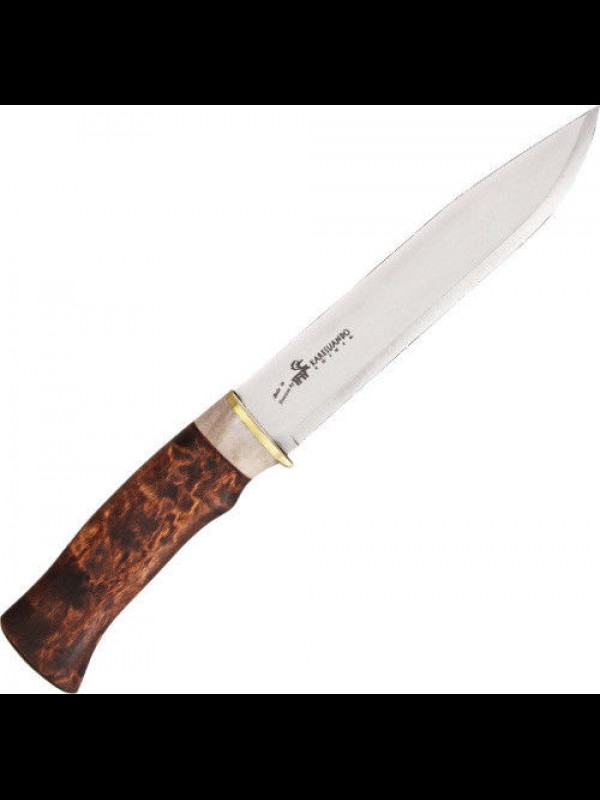 Prekrasni nož Large Hunter Brown premium izdelovalca nožev Karesuando je končno v naši trgovini, vam na razpolago. Ta lepi fiksni nož s 16cm dolgim rezilom ima prečudoviti leseni ročaj ( kombinacija iz naoljenega lesa breze in jelenovega roga). Rezilo je narejeno iz kvalitetnega nerjavečega švedskega jekla. Large Hunter Brown je idealno darilo za nekoga, ki res ljubi nože.
