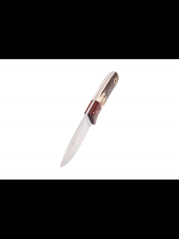 - Material ročaja: zelo naraven in lep jelenov rog v kombinaciji z rdečim lesom, ki je dolgotrajen in odličnega oprijema v vseh pogojih