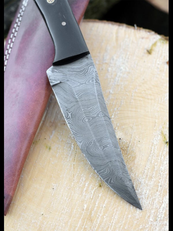 Nož z damaščanskim jeklom in ročajem iz kravjega roga